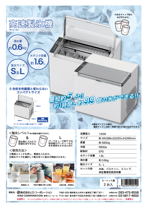 最短 5 分で氷が作れる製氷機 !