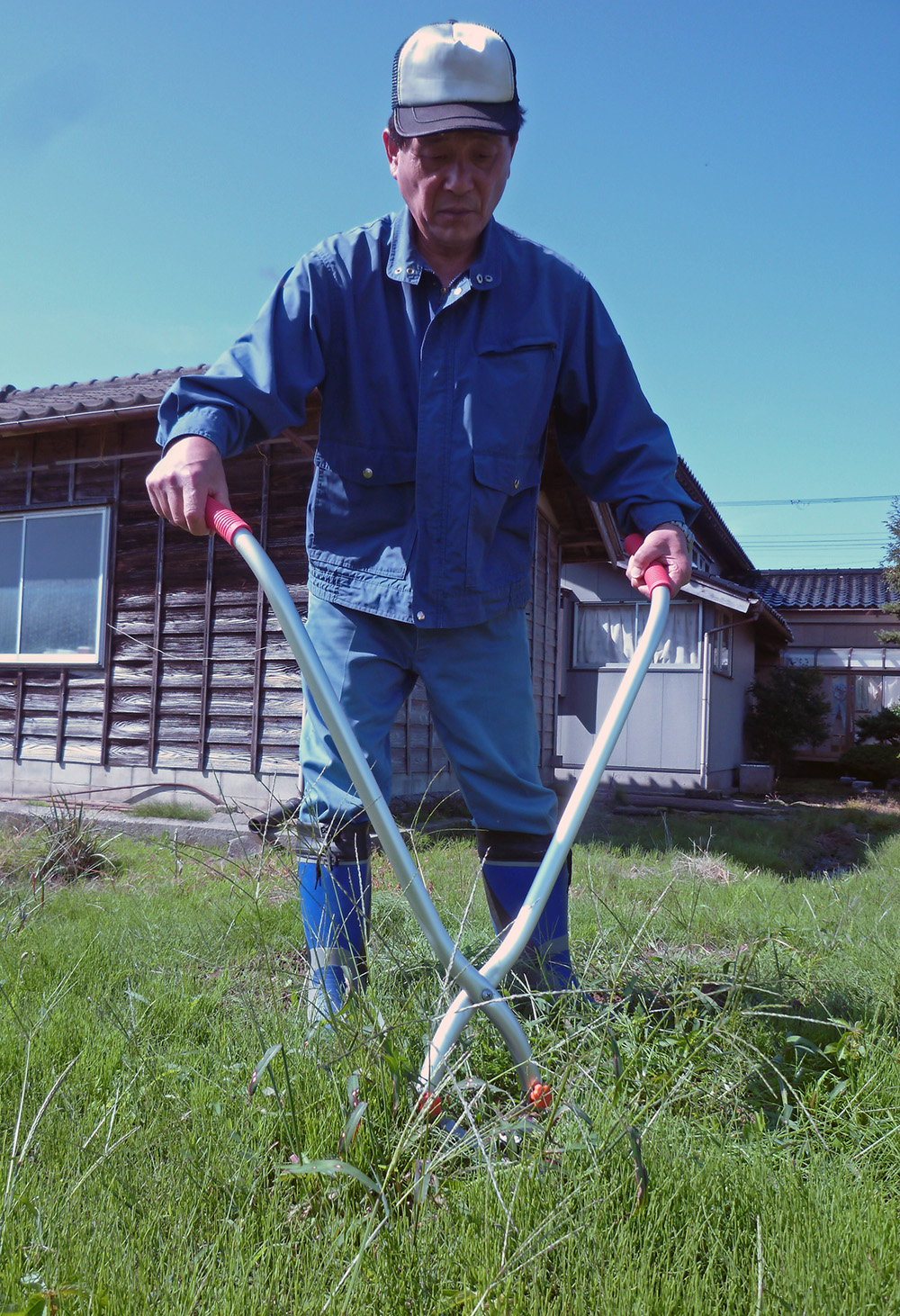 立ったまま腰や肘に負担をかけず、芝生や雑草のお手入れができます。