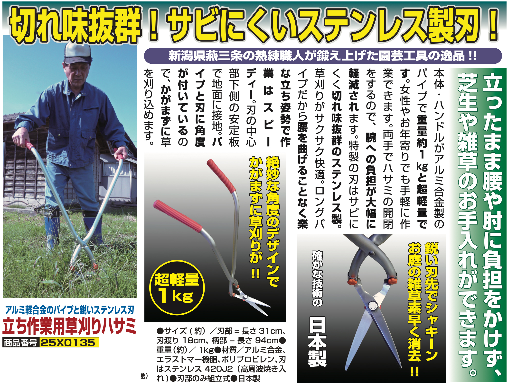 ●サイズ(約)/刃部=長さ31cm、刃渡り18cm、柄部=長さ94cm