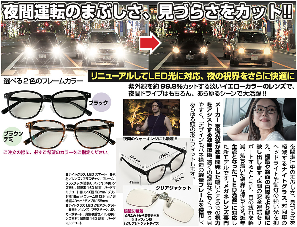 夜間走行中のまぶしさ、見づらさを軽減するナイトグラス。