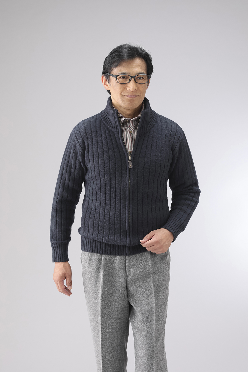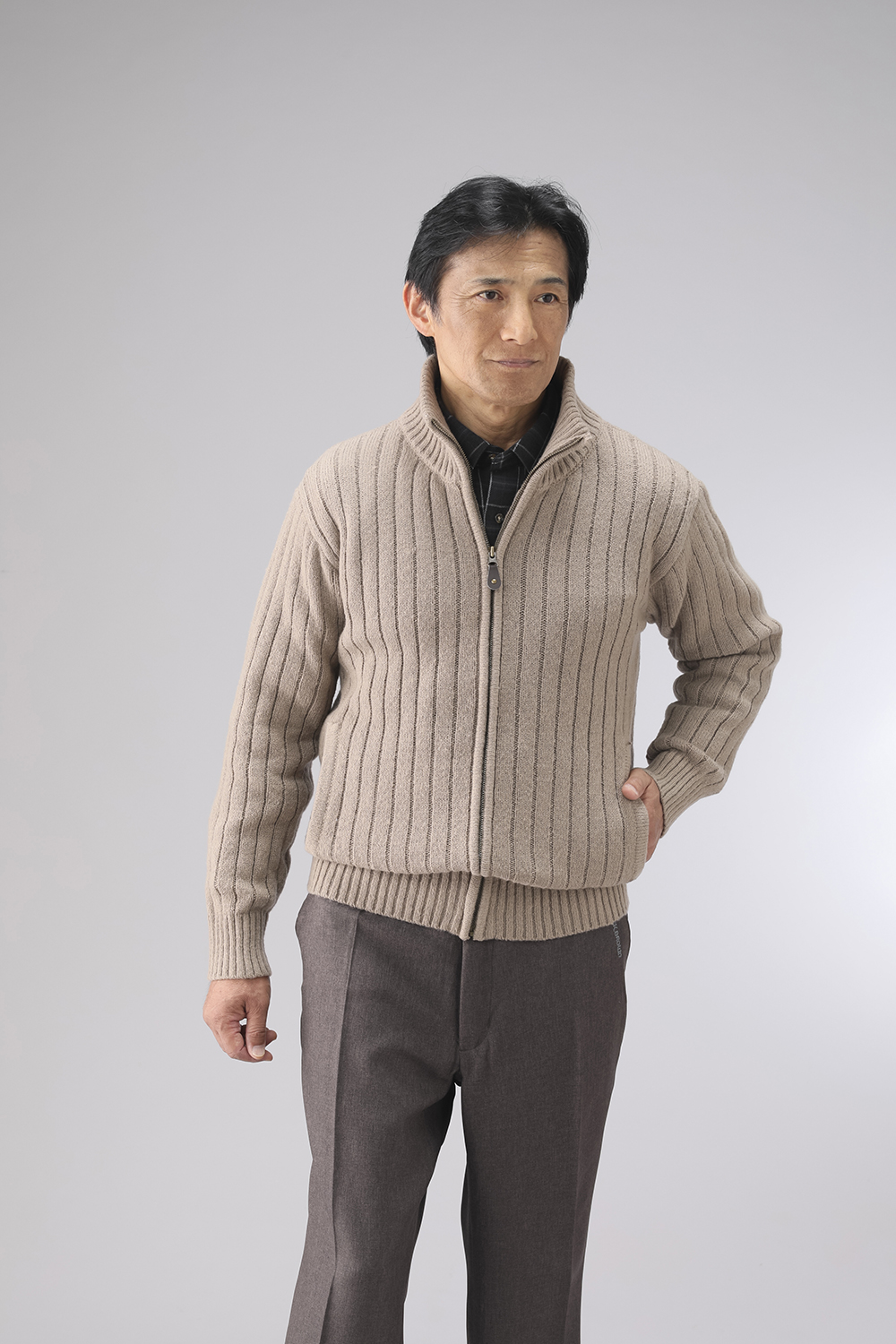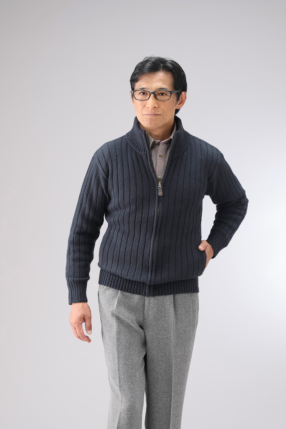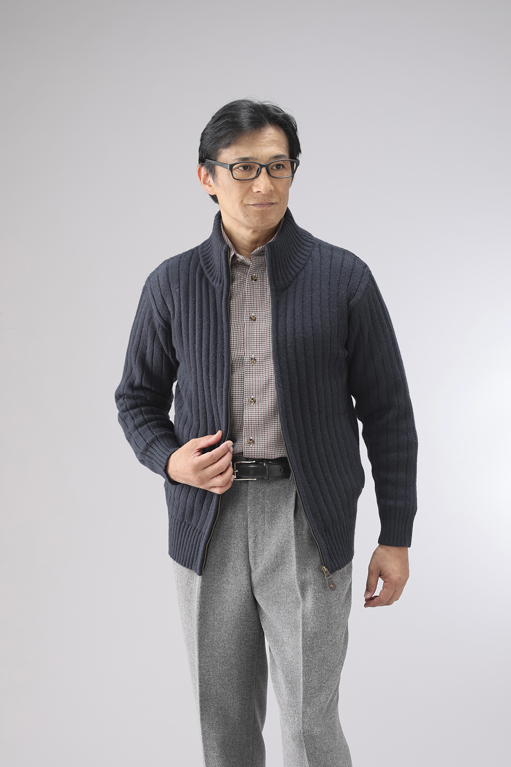 杢調のざっくりとした編地が特徴のフルジップセーターです。