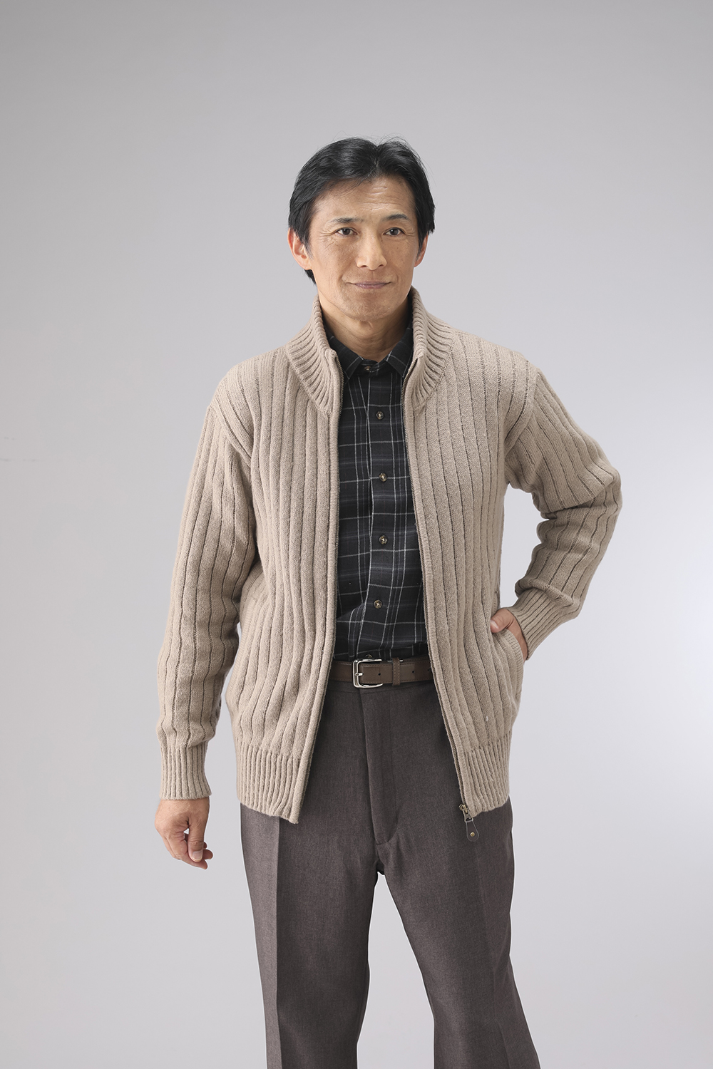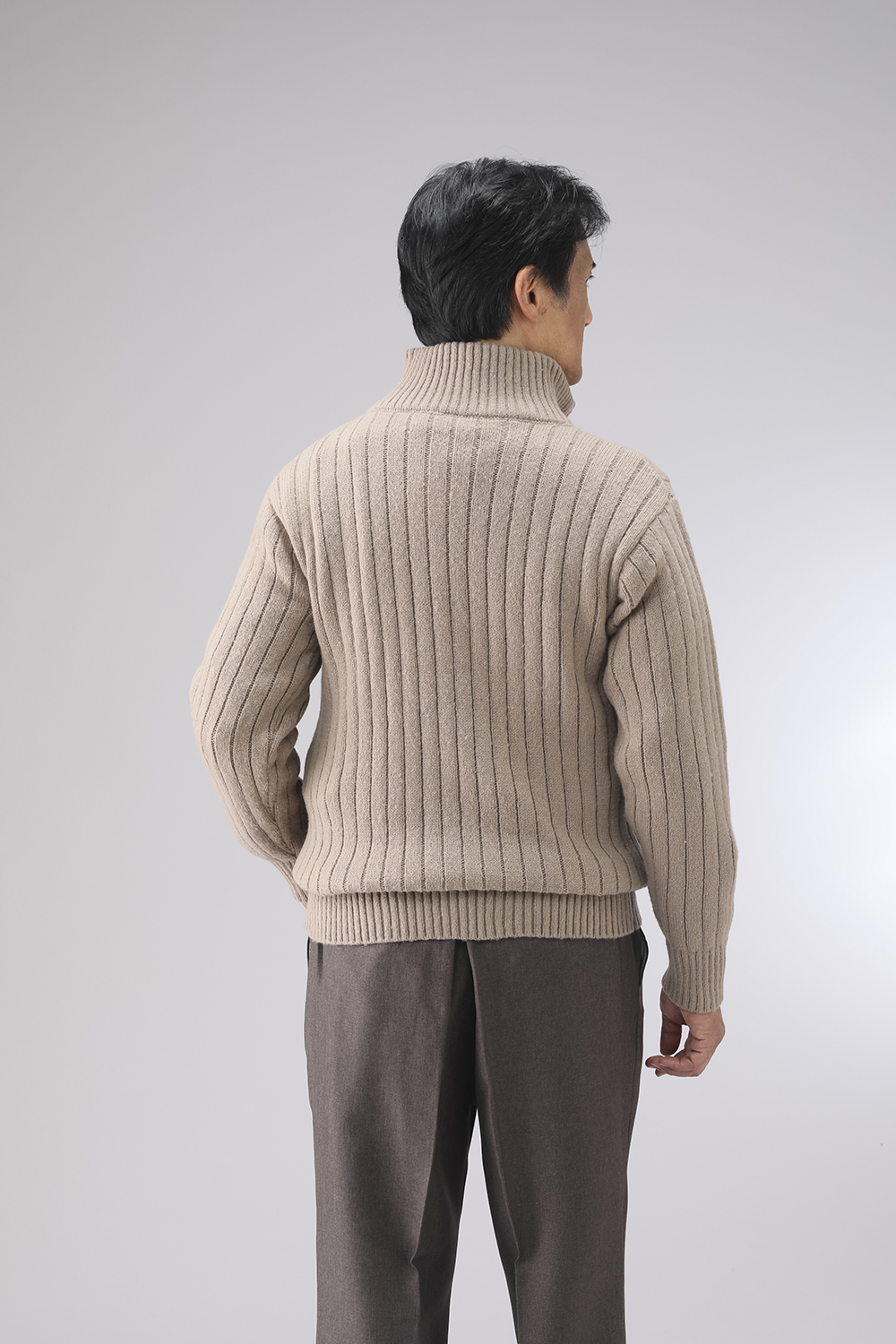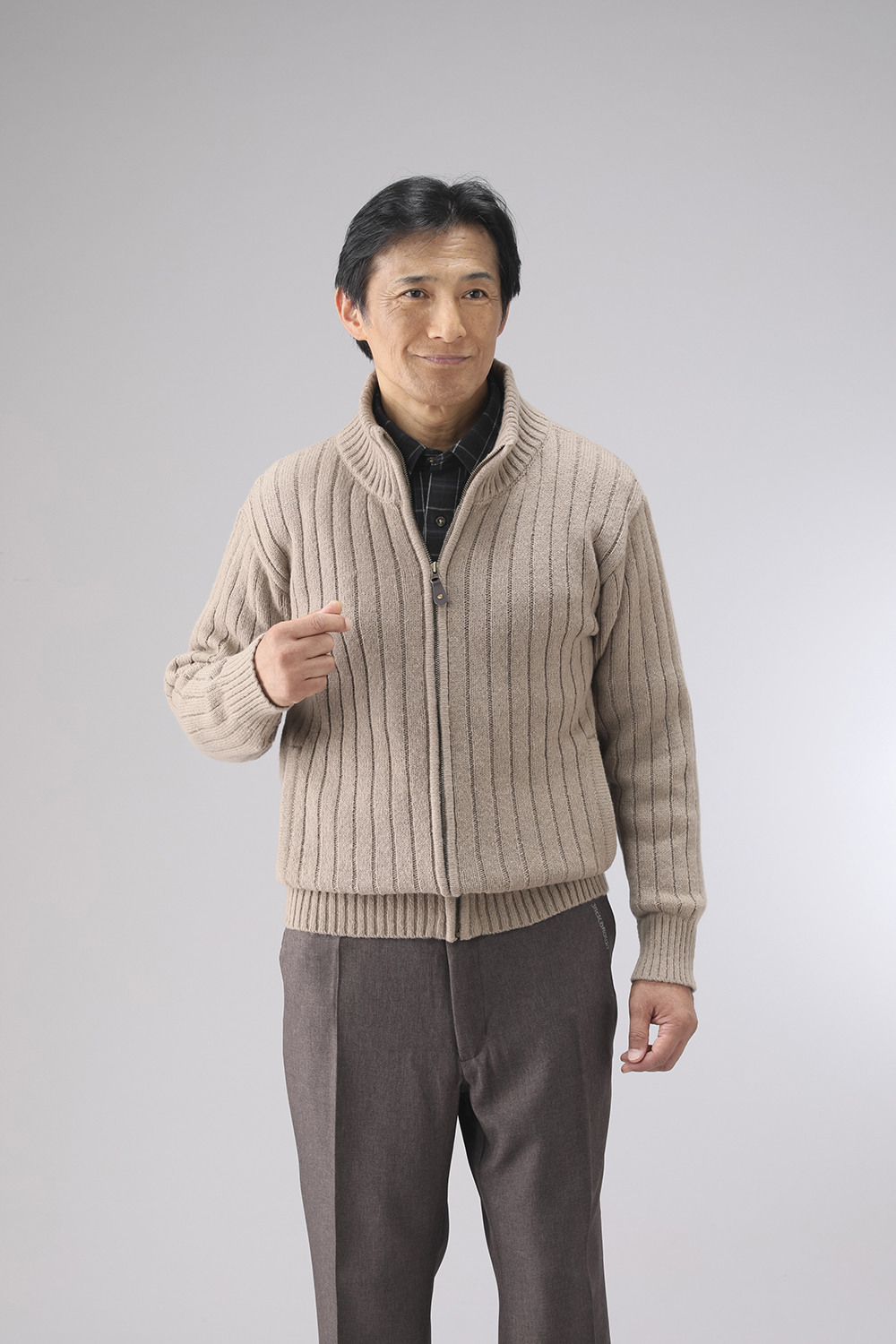 杢調のざっくりとした編地が特徴のフルジップセーターです。
