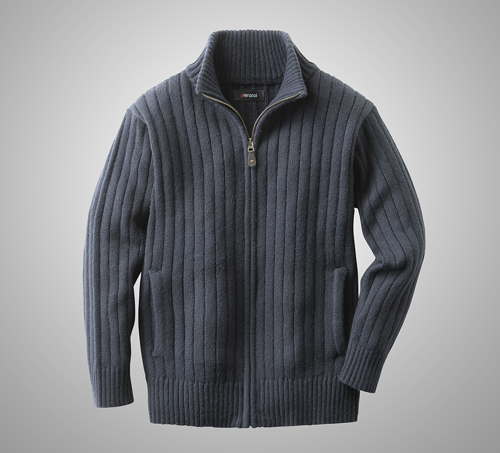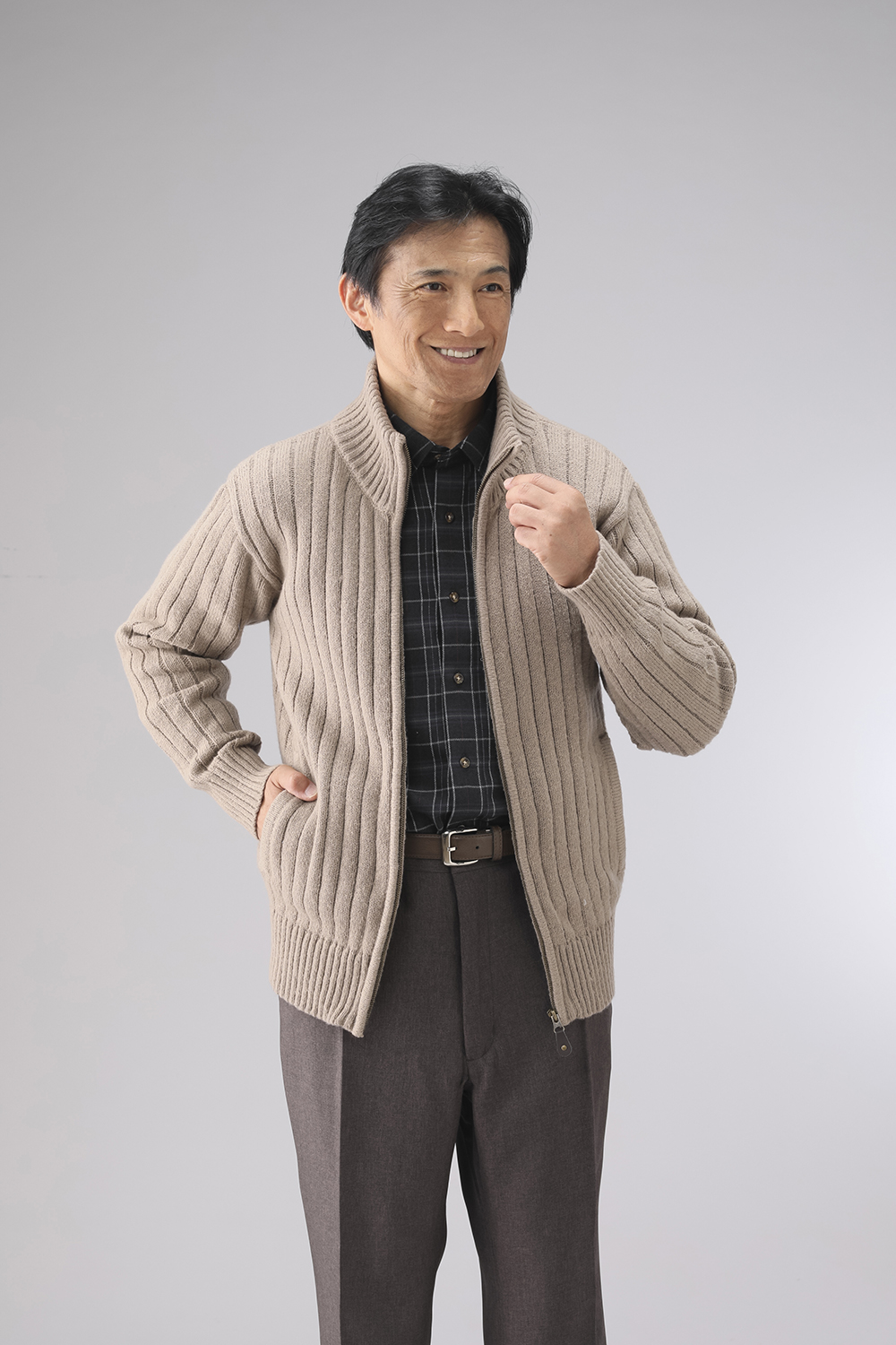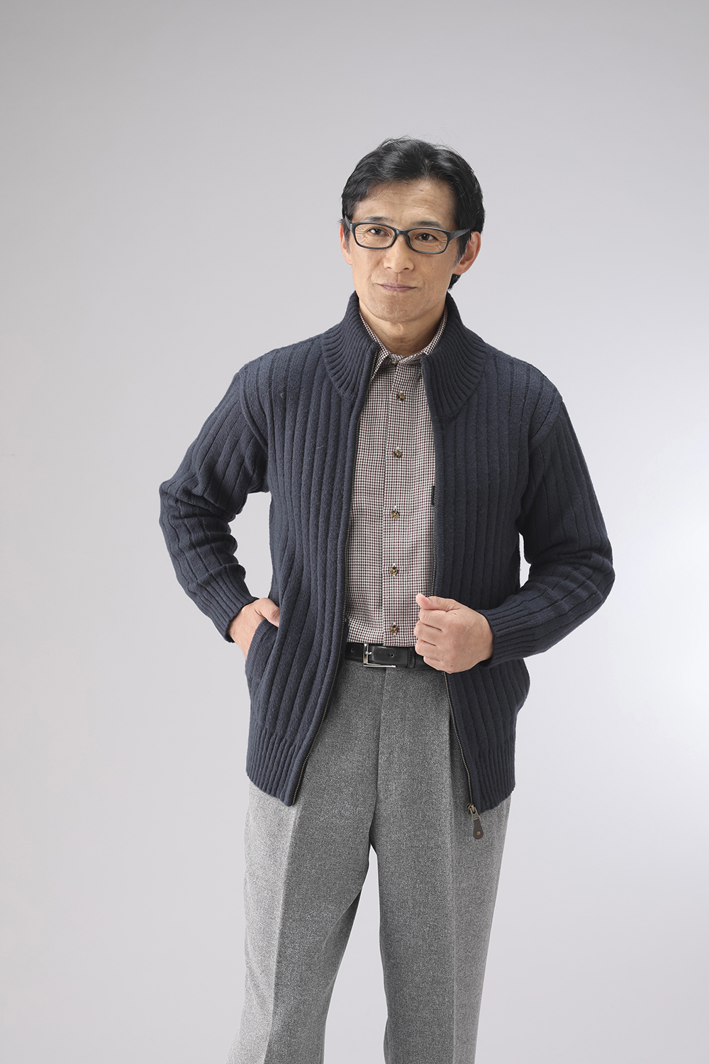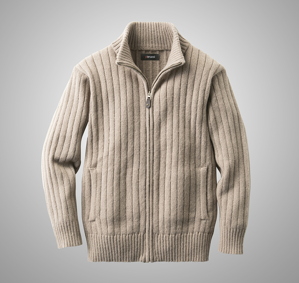 杢調のざっくりとした編地が特徴のフルジップセーターです。