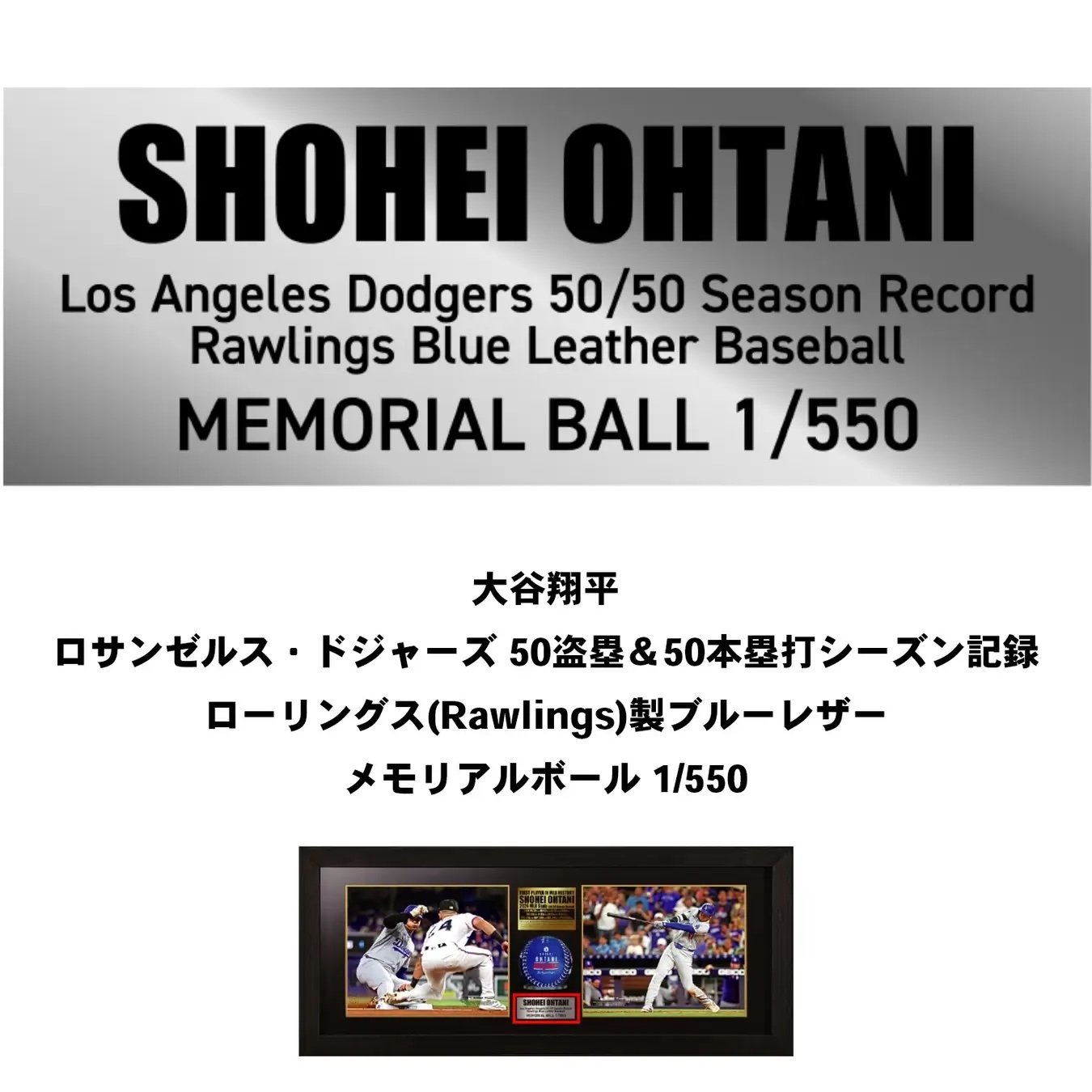 この偉業を称えて、世界限定550点販売される「大谷翔平選手サイン入り記念ボールMLB公式ライセンスフォト2枚セット」が登場!