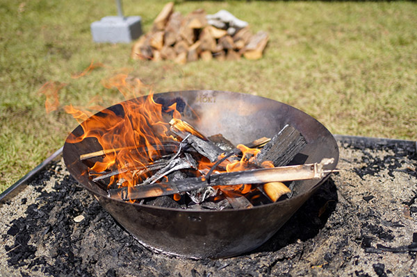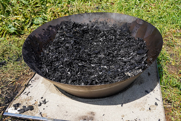無煙炭化器は、底のないすり鉢状のステンレスで、直接土の上などに置いて使います。
