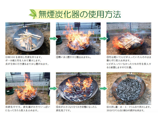 ④ 100ℓの炭が30 分ほどで作れます。