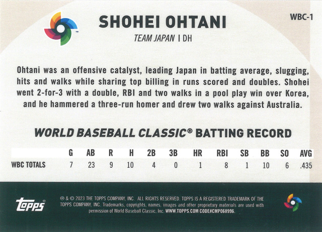 topps 2023 Japan Edition 侍ジャパン全25枚コンプリートセット+大会MVP獲得大谷翔平カード