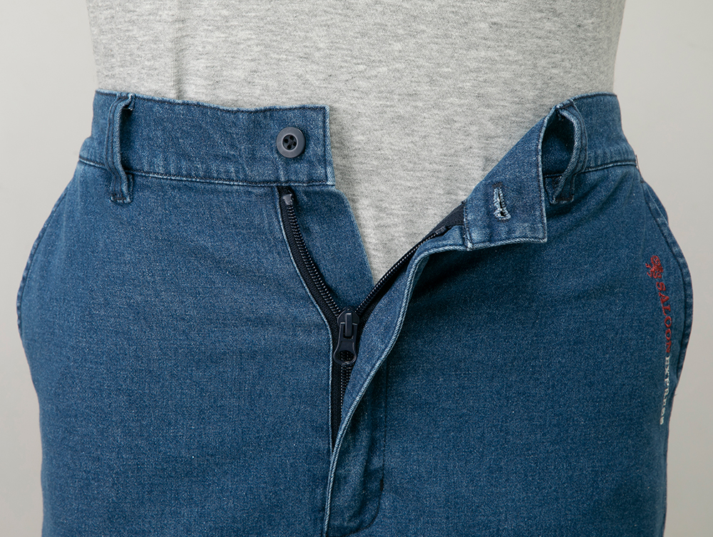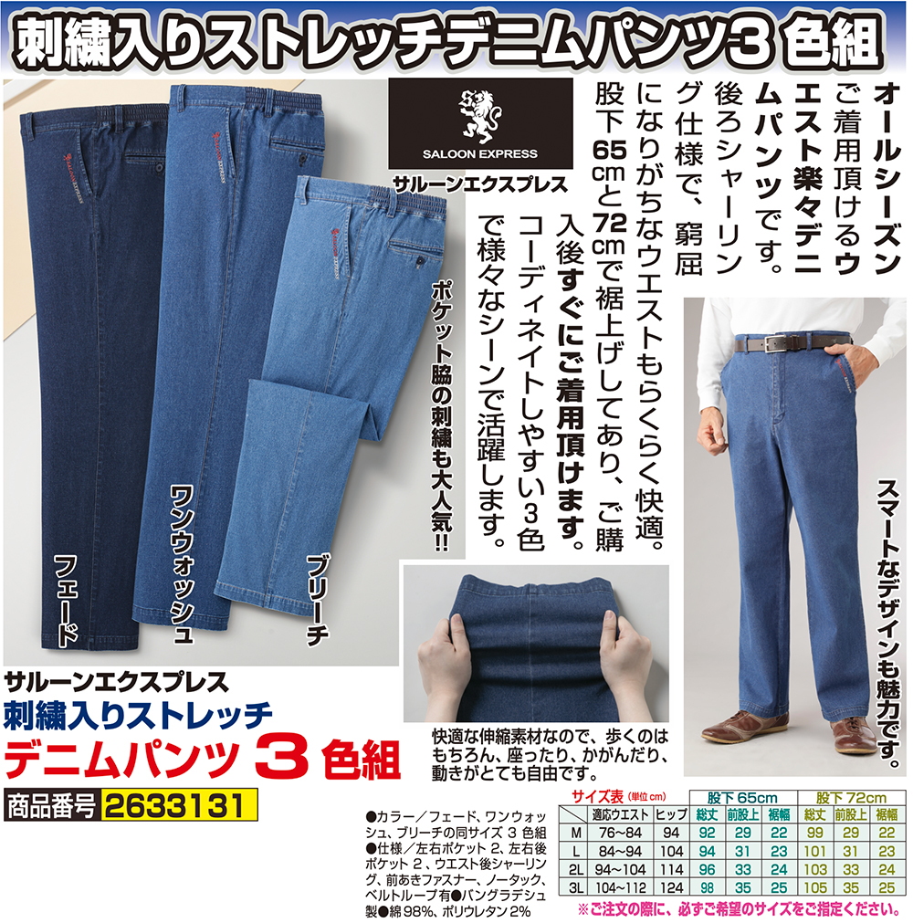 オールシーズンご着用頂けるウエスト楽々デニムパンツです。
