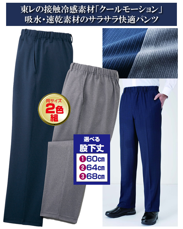東レの接触冷感素材「クールモーション」吸水・速乾素材のサラサラ快適パンツ。