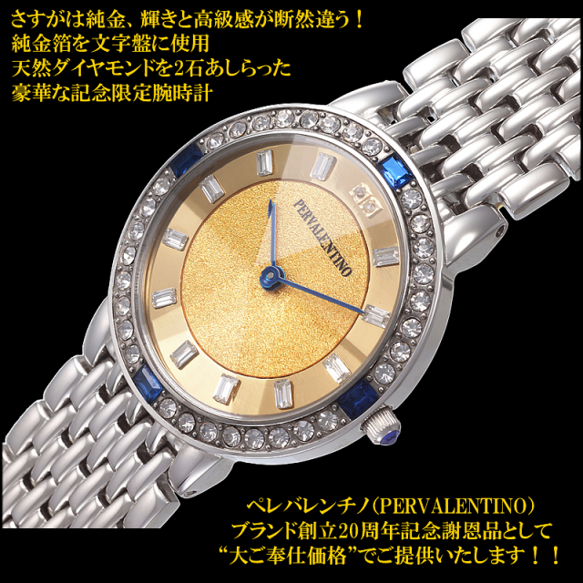 ■ペレバレンチノ(PERVALENTINO)純金天然ダイヤ腕時計